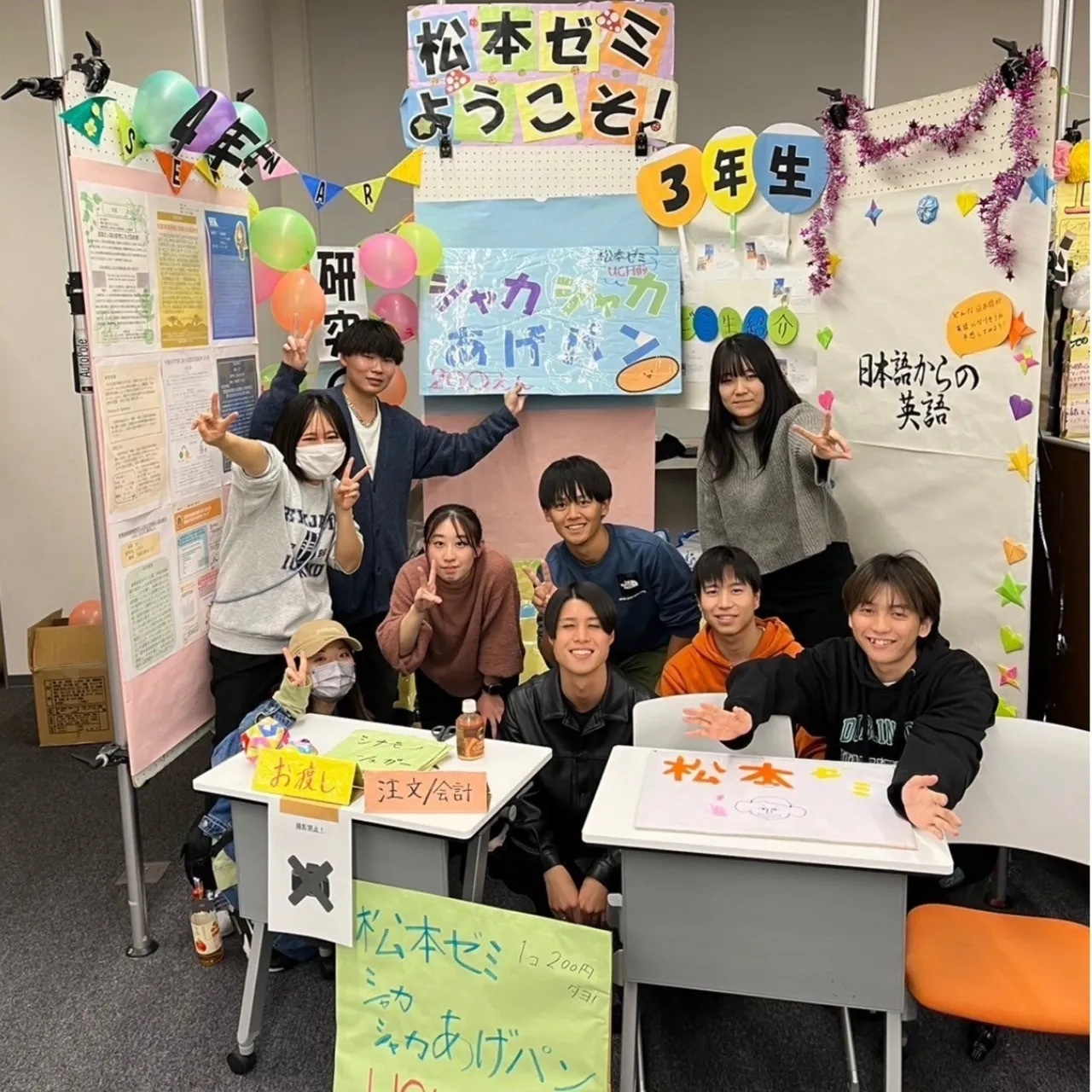 森本ゼミでは、研究成果の一部を展示します。ゼミ生の個性が輝く活動の様子をご覧ください。大学生活や英語学習に関する相談会も行っております。お気軽にお越しください!