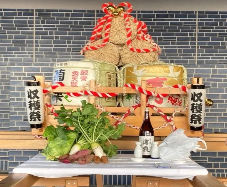 収穫祭最終日に担ぐ神輿の展示を行っています!今年は過去の写真や神輿を担いでいる様子も展示しております!ぜひ見に来てください!